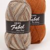 Slitesterkt som bare et sokkegarn kan være! DROPS Fabel er et 4-tråds garn som er superwash-behandlet, hvilket gjør det egnet til daglig bruk i tillegg til at det kan vaskes i maskin. I motsetning til vanlig sokkegarn, er Fabel spunnet i en finere ullkvalitet. Dette gjør at Fabel egner seg til langt mer enn bare sokker – prøv det for eksempel på babyplagg! Med et av de største fargekartene i DROPS sortimentet, har DROPS Fabel tre garnvarianter som gir plagget forskjellige resultater: uni colour, som er ensfarget; print, der varierte farger repeteres regelmessig og long print, lik som print men med lengre repetisjoner av hver farge. Både print og long print er farget med en metode som kalles “fancy dyeing” som er forskjellig fra andre metoder ettersom det i hvert fargeparti er små variasjoner i både mønster og nyanse. Dette er ikke en feil, men en del av garnets egenskaper. Eksempelbildene i fargekartet viser garnets melering når man strikker et mindre antall m, som f.eks sokker. På større plagg vil meleringen se anderledes ut. Som med all jacquard-trykk vil det forekomme en variasjon i farger og mønster i samme fargebad. Made in EU. Oeko-Tex® certificate (STANDARD 100 by OEKO-TEX® 25.3.0099 Innovatext Textile Engineering and Testing Institute CO).